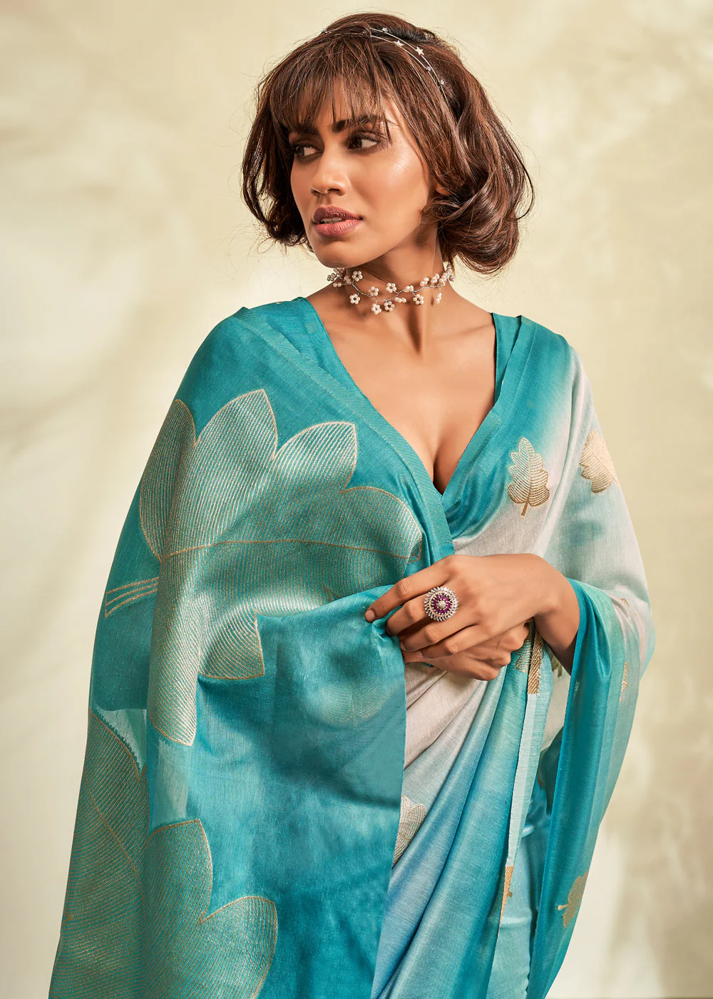 Aruba Blue Digital Printed Textured Silk Saree