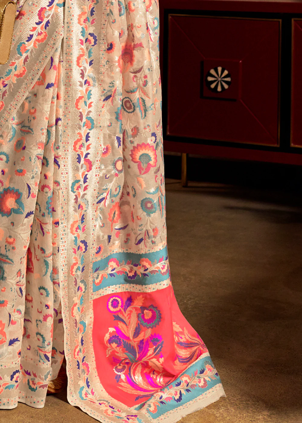 Pearl White Woven Cotton Jamewar Banarasi Saree
