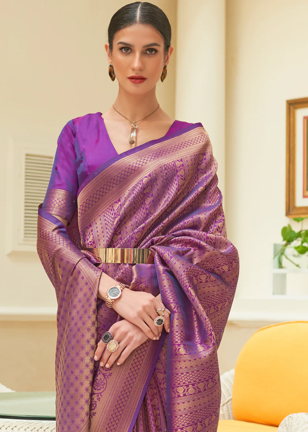 Plum Voilet Woven Kanjivaram Silk Saree
