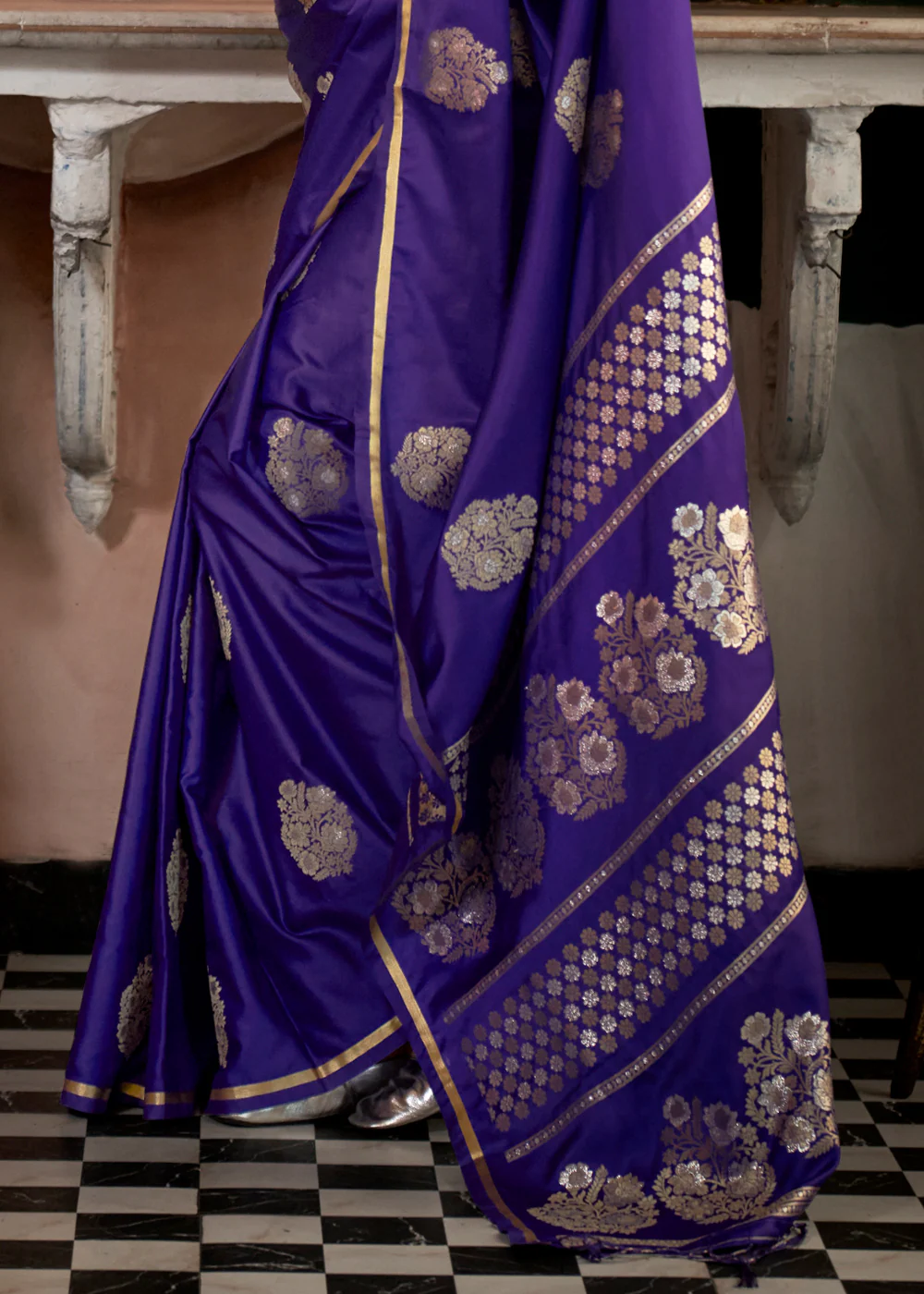 Purple Woven Banarasi Satin Silk Saree
