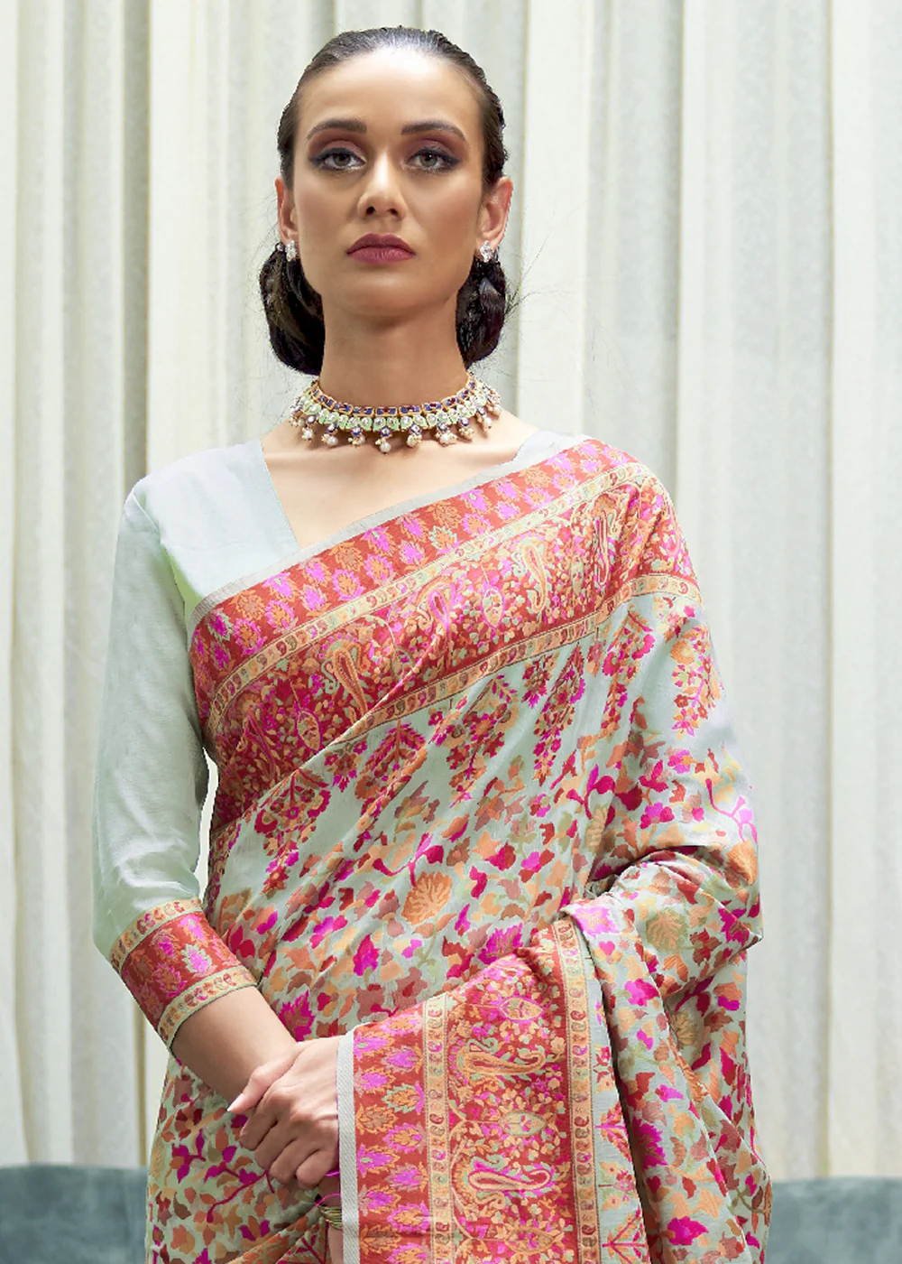 Light Blue MULTICOLOUR JAMEWAR WEAVE SAREE